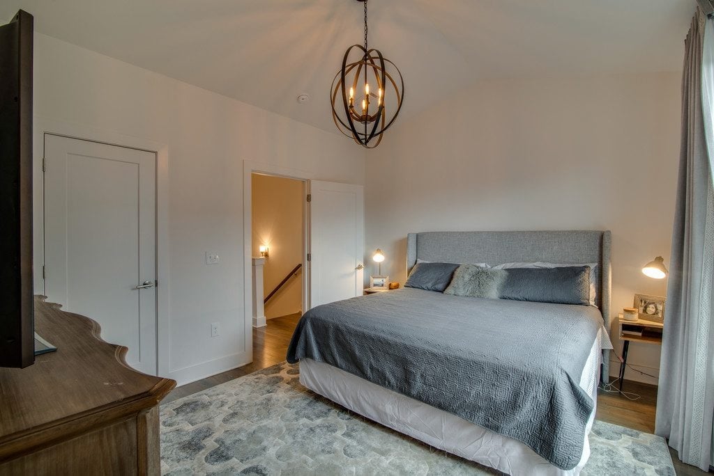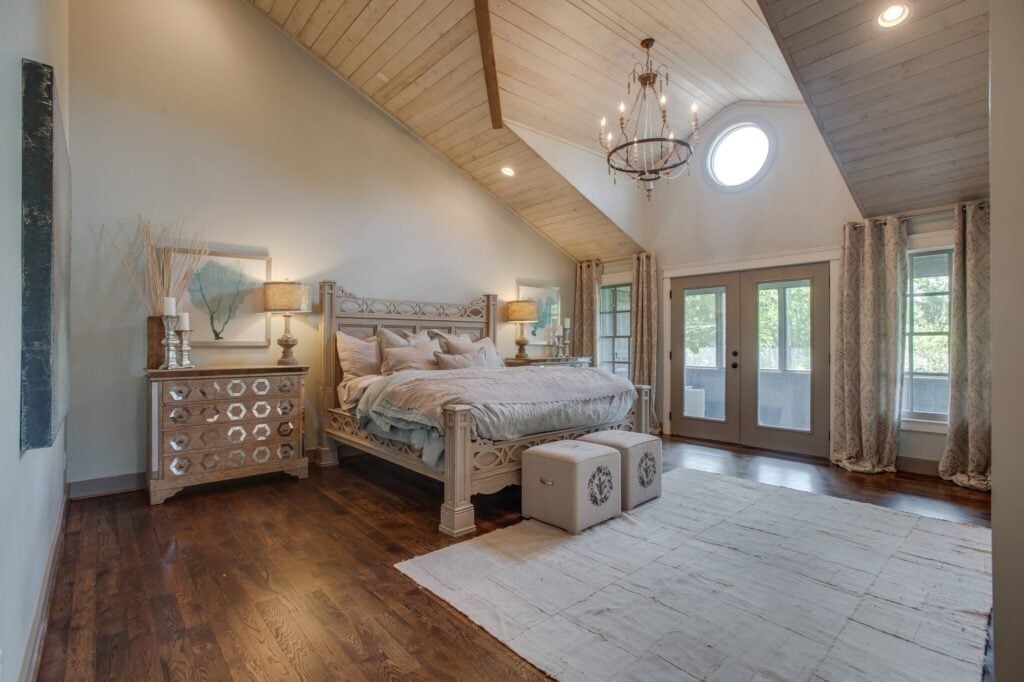 Choosing the right color for your sleeping oasis is essential to sleeping well. Color has been shown to have a major influence on mood. According to HGTV.com, shades of colors that are known to be most relaxing are typically earthy brown tones, soft blues, and delicate greens. You can incorporate these colors in wall color, bedspreads, pillows, and so much more. However, these colors may not be for everyone. As a result, be sure to pick something that makes you happy and relaxed when choosing the perfect color scheme for your bedroom. In the photo, you can see how the mix of the soft greens with the warm cream and earthy tones sets a calming tone to the room.