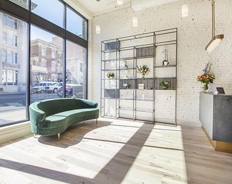 Well, thank you! I tagged along on a friend's work trip to LA and ended up shopping on Abbot Kinney. It's a street with all kinds of cool stores, boutiques, and amazing restaurants. I took pictures of bathrooms, wallpaper, mirrors, doors, just random details and then added them to a Pinterest board with my partner Natalie. We both built on it from there! Natural lighting is so important for what we do, so we added windows and designed the space in a way that allowed as much light as possible to shine through.