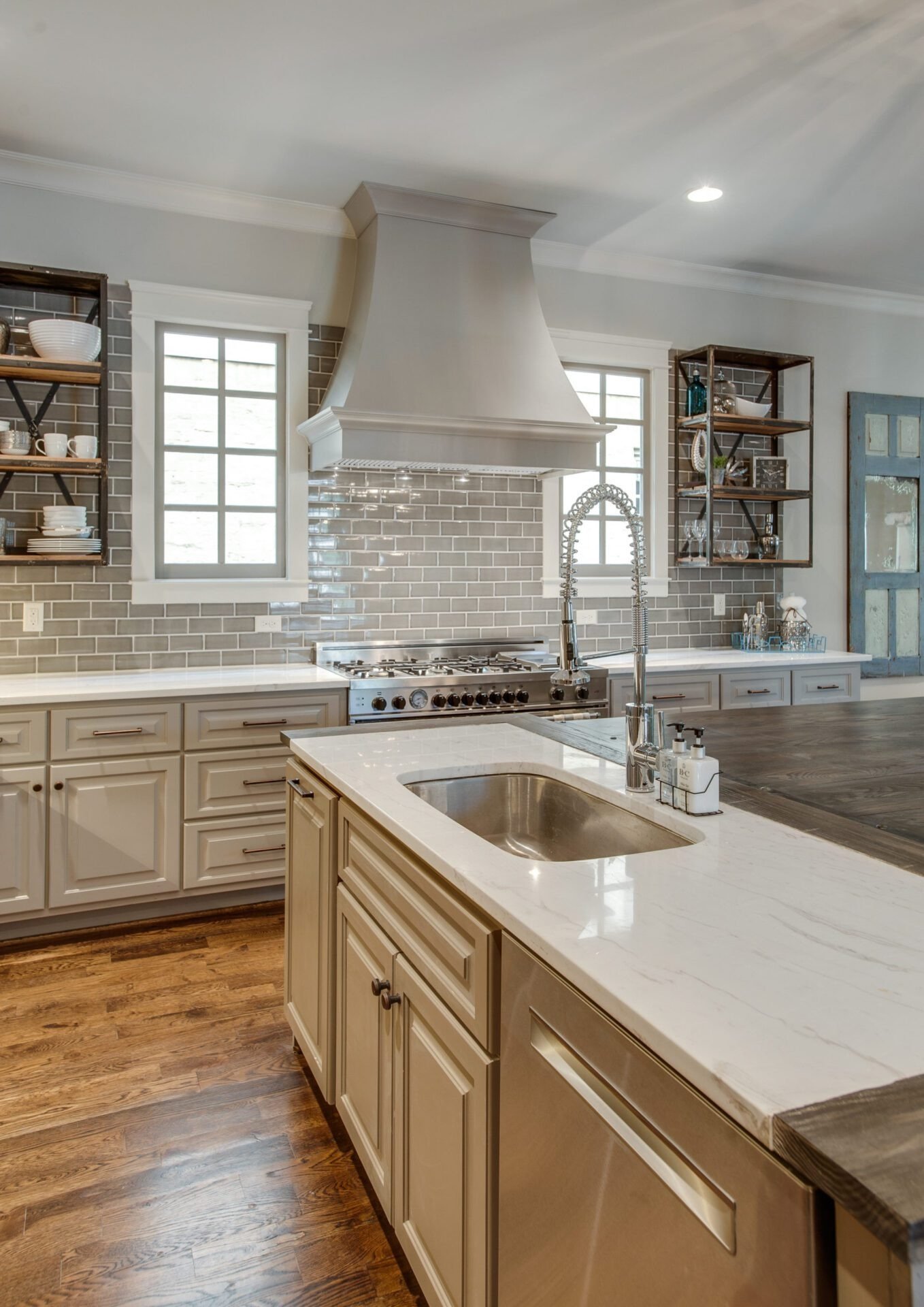 At first, the thought of replacing the kitchen faucet may seem like such a small change that it won't make much of a difference in the look of the home, but don't jump to conclusions too quickly! Exchanging the outdated brass-plated faucet with a chrome-plated or silver faucet really transforms the room. This quick and easy adjustment takes your home from outdated to upgraded for much less than it would cost to redo the entire room. This rule can and should also be applied to bathroom sink faucets. Notice how lush the beautiful kitchen faucet below really pulls the entire kitchen together, giving it a more current look.