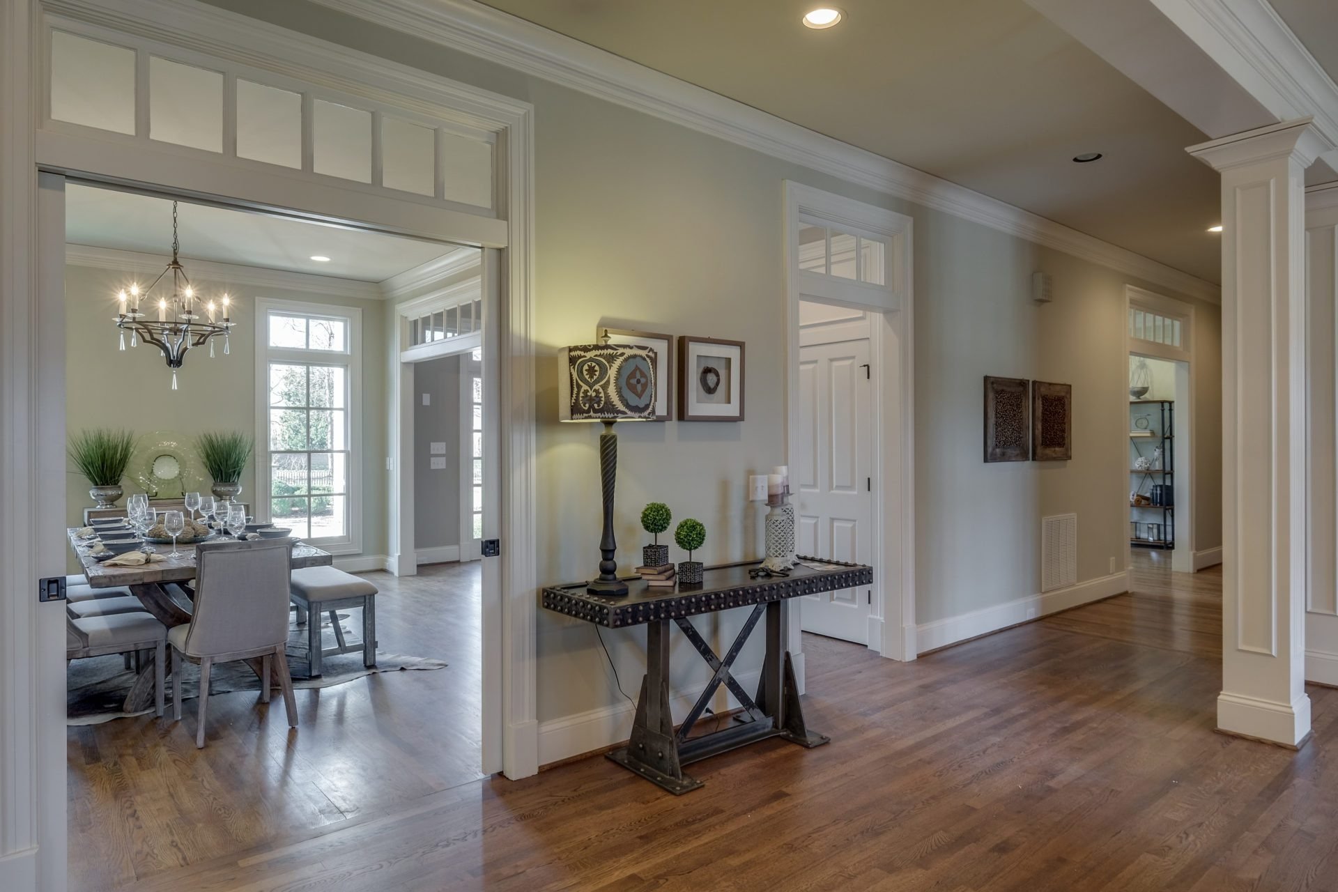 Exchanging dated light fixtures with more contemporary pieces really sets the tone of a room's design. Light fixtures are a great way to express your own sense of style, and they also double as a piece of art. Some light fixtures are pricey, but with the right eye, finding one for less than what designer lighting stores charge is plausible. Some great places to consider searching are home consignment stores, home outlet stores, and flea markets. In the picture below, you can see how the light fixture puts a perfect spin on traditional with a touch of modern. It also brings your eyes directly to the ceiling, making the room feel much larger.