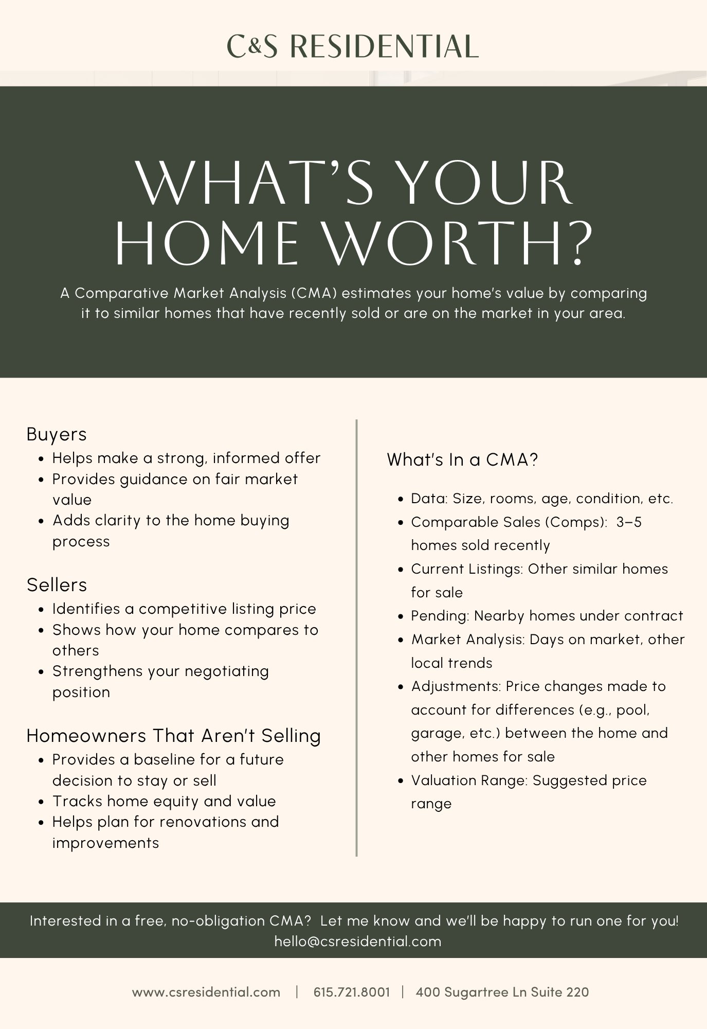 For buyers, a CMA provides confidence. It ensures you’re making a fair and informed offer based on real market data—not emotion or pressure. In a competitive market, that clarity can make all the difference.